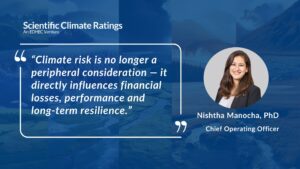 “Climate risk is no longer a peripheral consideration – it directly influences financial losses, performance and long-term resilience.”,  Nishtha Manocha, PhD, COO.